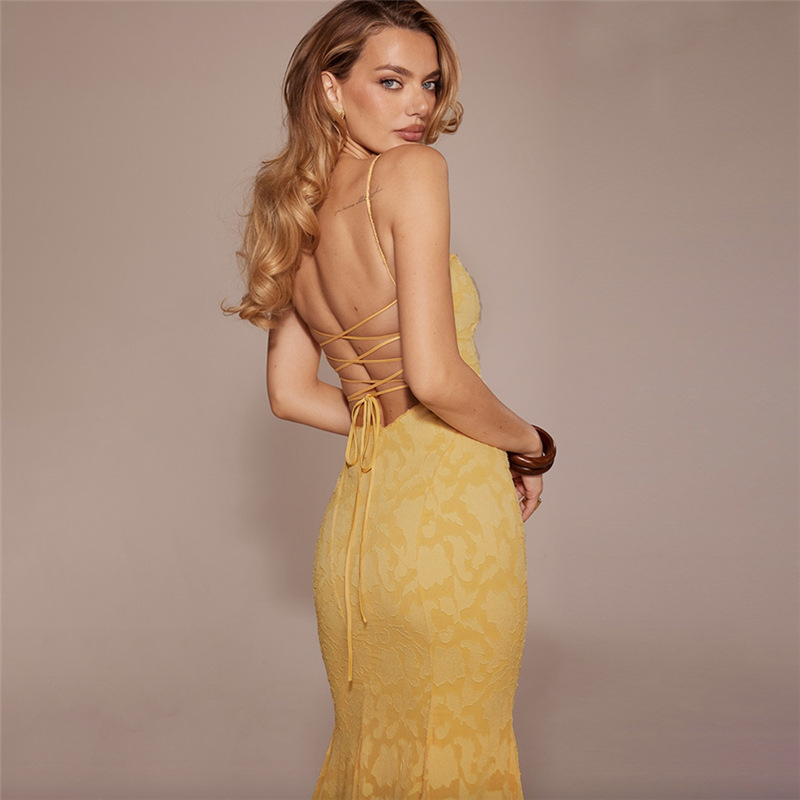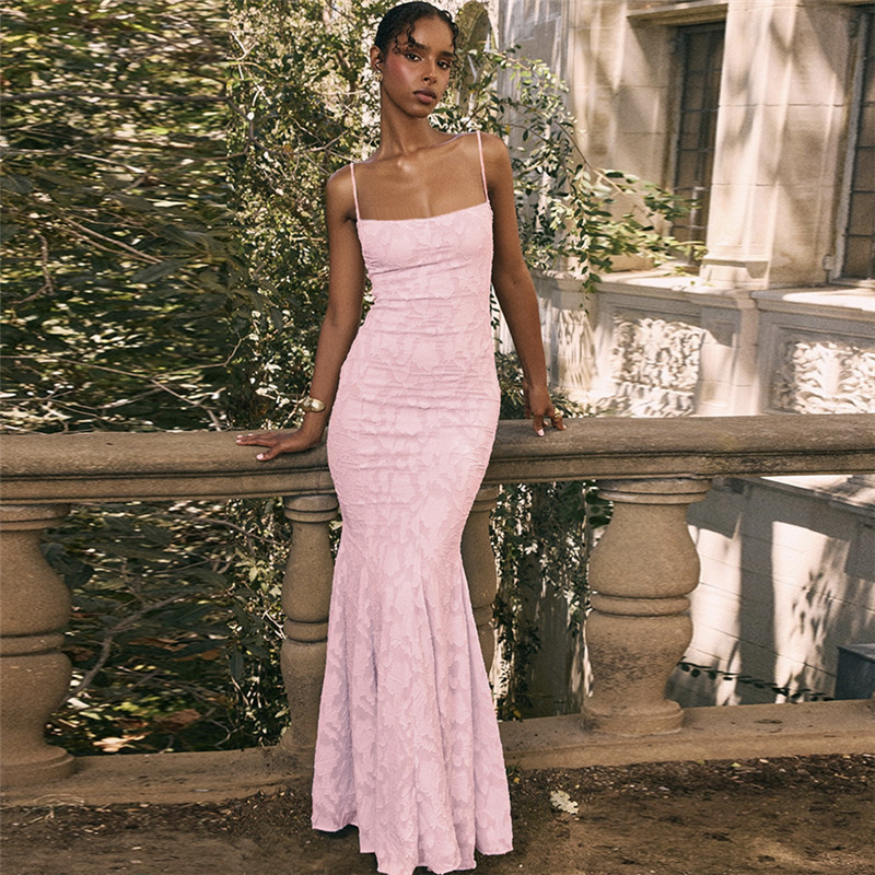 Features: 3D pattern, open back design, strap style, non-slip, maxi length, sleeveless, mid-rise, bodycon mermaid silhouette